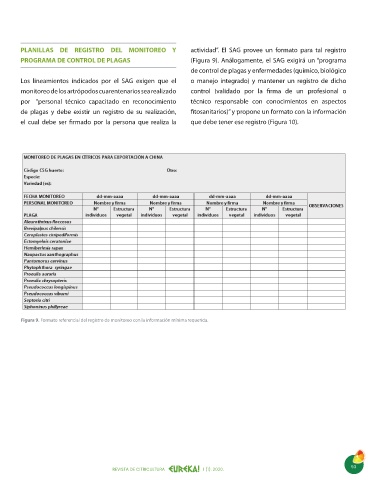 PLANILLAS DE REGISTRO DEL MONITOREO Y actividad”. El SAG provee un formato para tal registro